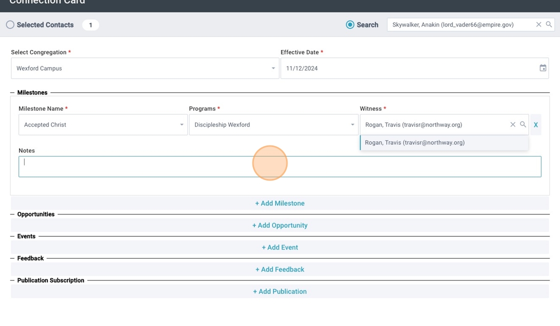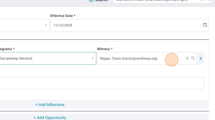 10. Put your name in the Witness field to record yourself as entering the milestone