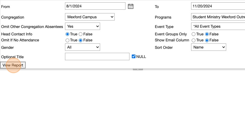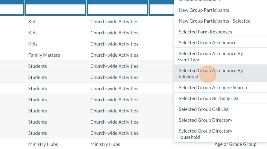 If you're wanting to see how many times your kids/students have attended church between “X” date and “Y” date, this is the report for you!
