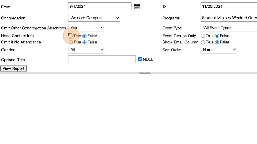 9. Optional: Select "True" on "Head Contact Info" if you want to display parent information