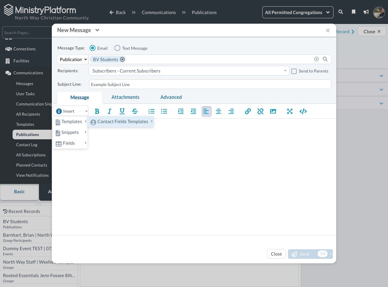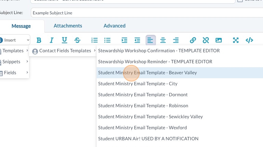 14. Select your "Student Ministry Email Template - [CAMPUS]"