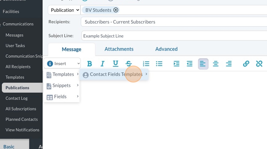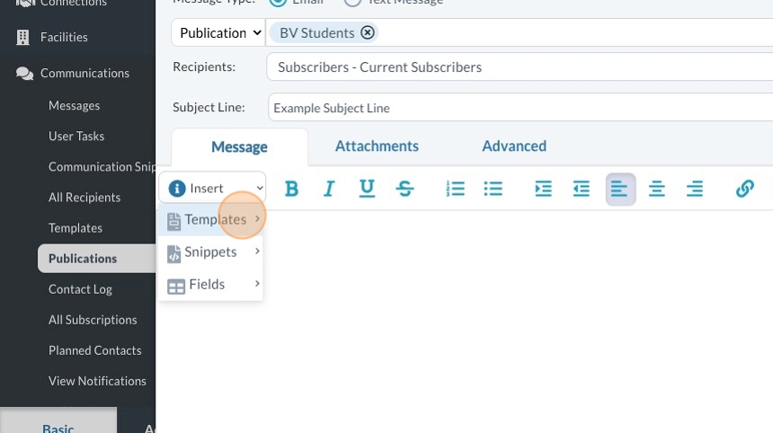 Alert: You have to add a subject line AFTER you insert the template, or the template will overwrite whatever you put in.