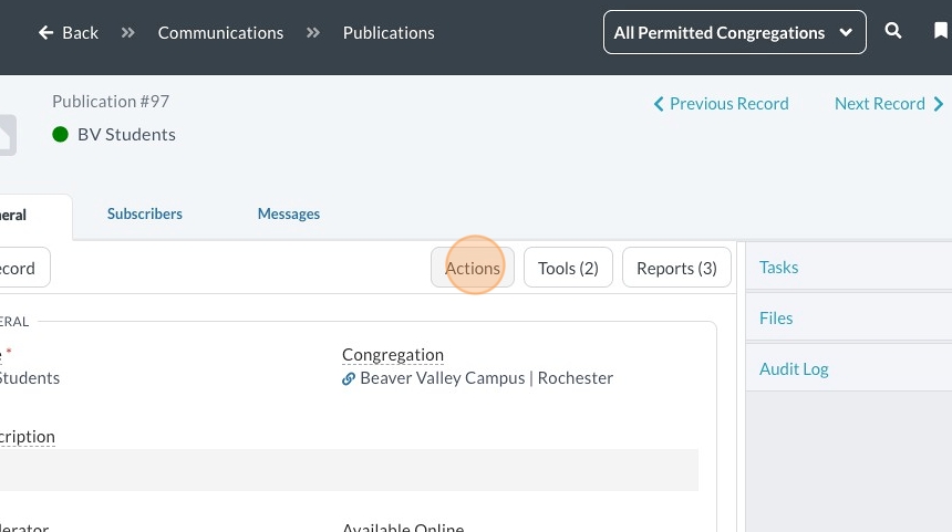9. Click "Actions"