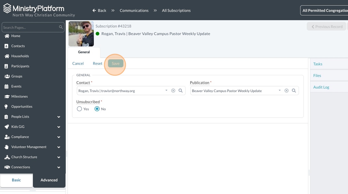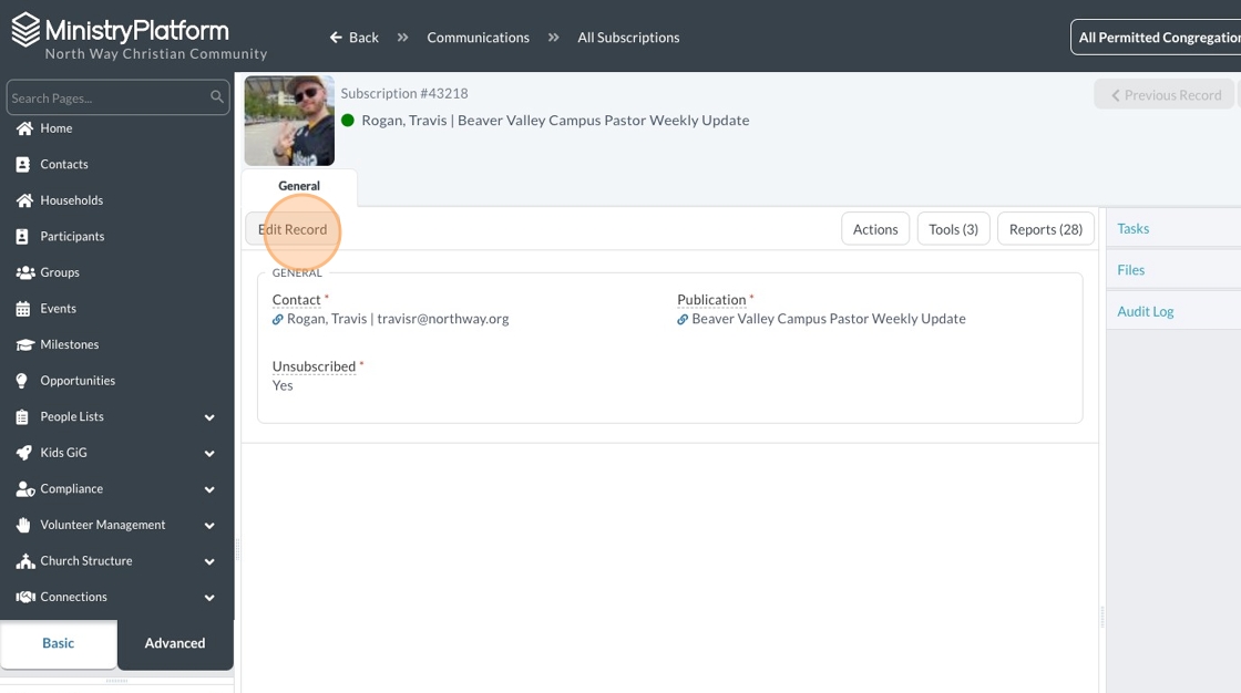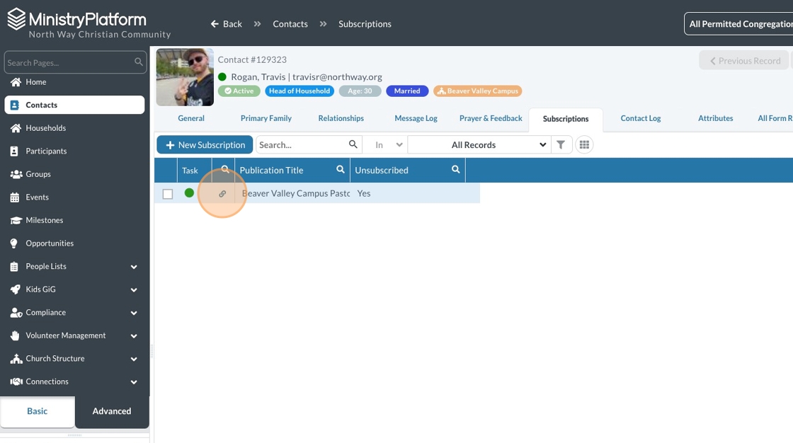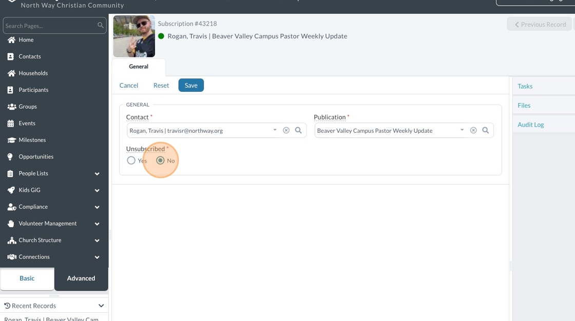 Tip: Our communications dept. uses a separate software program to send weekly/monthly updates. If you see that a contact is subscribed but is still not getting emails, please reach out to Creative/Communications