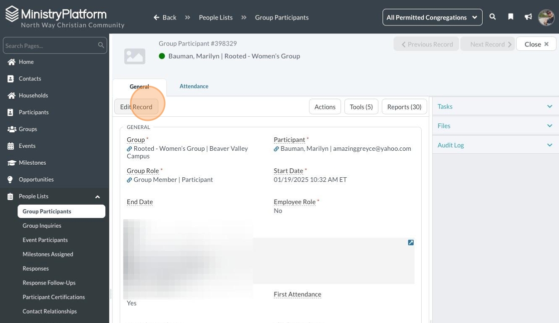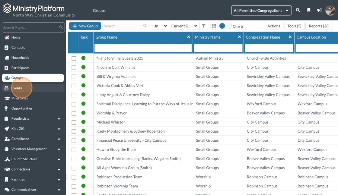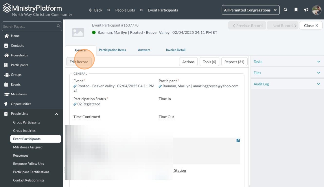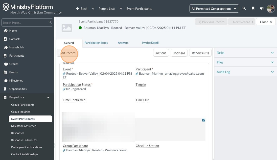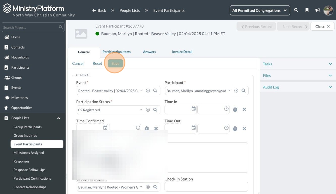 - Changing an Event Participant to "Cancelled" will automatically open the spot on the registration for their group selection, and will end-date their Group Participant record (this process takes place overnight).