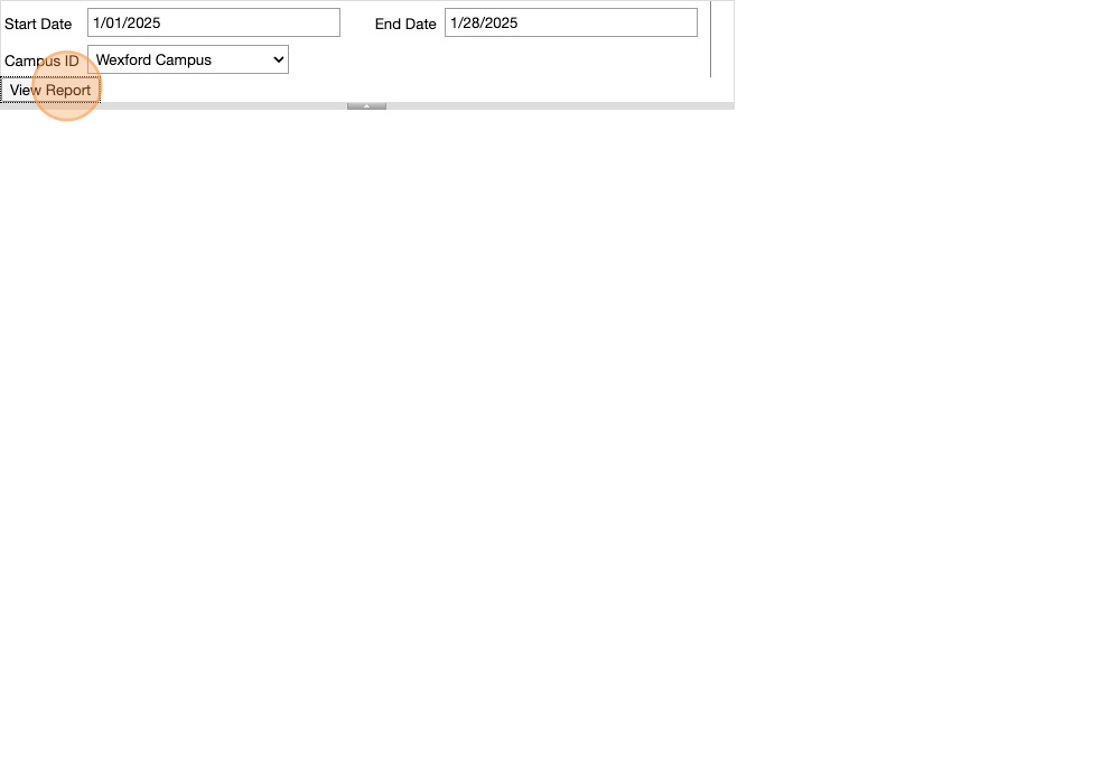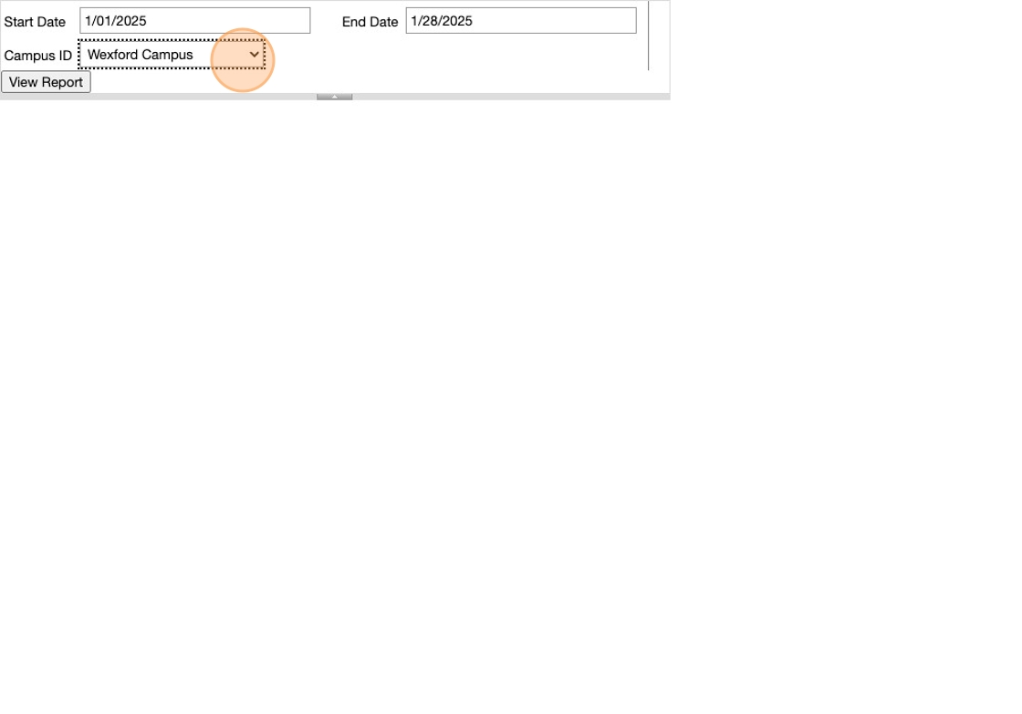 4. Enter the date range you want to see. Typically this report is run on Tuesday for the campus staff meeting, so the date would be from the Sunday 2 days prior until today. Or you can run it from one full week ago or when you know data was entered and not yet viewed