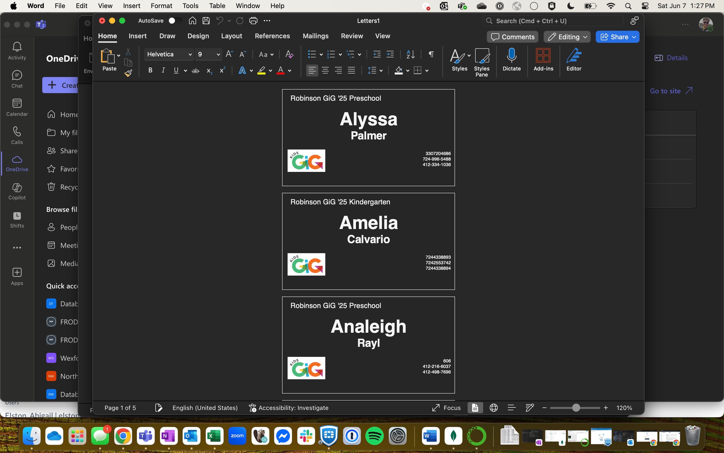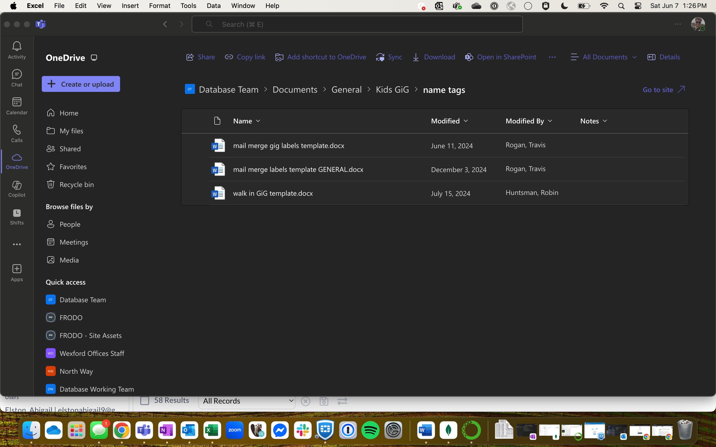 8. In Teams/OneDrive access the file "mail merge gig labels template.docx"